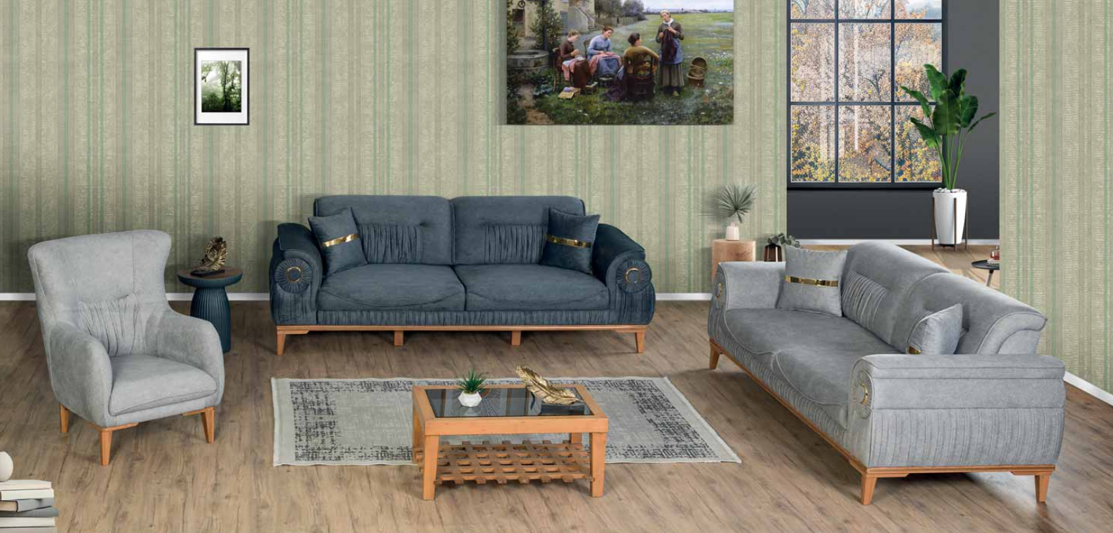 Geniş ve rahat oturum alanına sahip 3’lü koltuk, günlük kullanımda maksimum konfor sağlarken; şık berjer tasarımı dekorasyonunuza tamamlayıcı bir dokunuş katar. Dayanıklı yapısı ve kaliteli malzemesiyle uzun ömürlü kullanım sunan Asos Koltuk Takımı, modern ve sade yaşam alanları için ideal bir tercihtir.